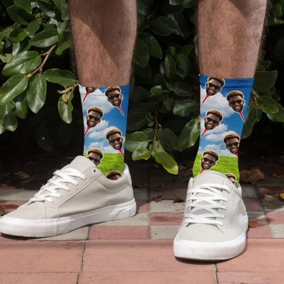 Calling all golf enthusiasts! Prepare to tee off in style with our tee-rific Personalised Golf Tee Face Socks – the ultimate treat for any golf fanatic. Whether they're hitting the fairway with their mates or simply showing off their love for the game, these socks are sure to be a hit! Crafted from printed polyester with a classic black heel and toe, these socks combine comfort with quirky charm. But the real fun begins when you upload a photo of your loved one's face and watch as it's hilariously incorporated into the design. It's a hole-in-one way to add a personal touch to their golfing attire! Whether they're a seasoned pro or just starting out, these socks make a super fun birthday or Christmas gift for any golf lover in your life. So don't get caught in the rough – treat them to a pair of Personalised Golf Tee Face Socks and watch them putt their way to happiness! Personalisation: Upload Image for the socks For best results, please follow the guidelines below: The image selected should be the high resolution, grainy photos may result in a poor end product Ensure that the image selected is close-up with the entire head/face clearly visible Ensure that the head is 'face on' and not to the side Please ensure you reference the image examples above for a visual example of the the type of images that should be used to get the best results for your personalised item! Please note: The better the quality of the image the better the print Personalised products can only be returned if they are faulty