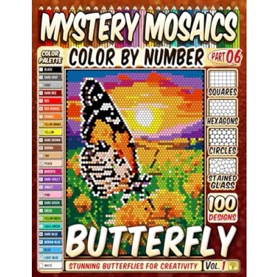 100 Beautiful Butterfly Scenes Mystery Mosaic Color by Number: Stunning Butterflies and Serene Natural Landscapes with Squares, Hexagons, Stained Glass, Circles for Creativity Relaxation