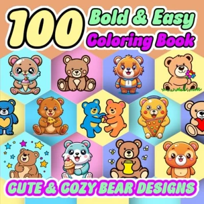 100 Bold and Easy Coloring Book: Cute Cozy Bear Designs for Kids, Adults Seniors Book Stress Relieving