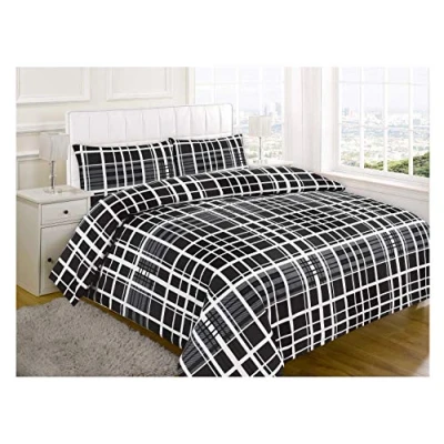 100% Brushed Cotton Black Check Design Flannelette Duvet Cover Quilt Winter Bedding Bed Sets with Pillowcases King Size,