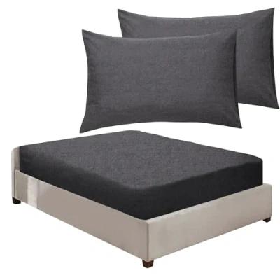 100% Brushed Cotton Flannelette 40CM/16" Extra Deep Fitted Sheets in 12 Colours (Charcoal, King + Pillowcase Pair)