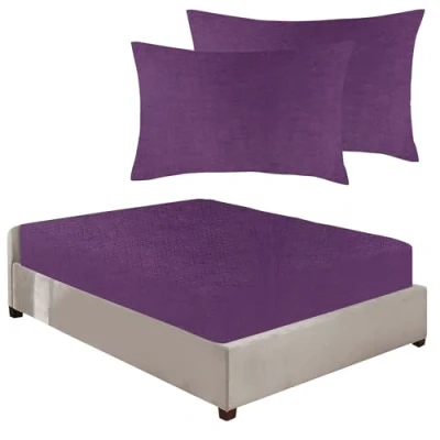 100% Brushed Cotton Flannelette 40CM/16" Extra Deep Fitted Sheets in 12 Colours (Purple, Single + Pillowcase Pair)