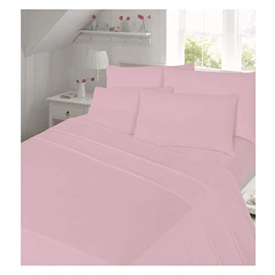 100% Brushed Cotton Pink Flannelette Flat Sheet, Soft Quality Sheet with Matching Pillowcases King,