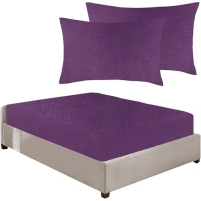 100% Brushed Cotton Soft Flannelette 25CM/10" Fitted Sheets in 12 Colours (Purple, F SK 25 + Pillowcase pair)