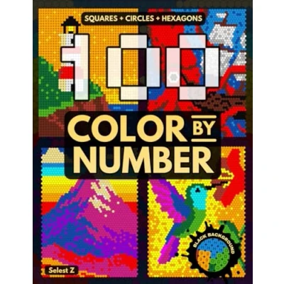 100 Color By Number Mysteries Shapes Quest Squares + Hexagons Circles BLACK BACKGROUND:: Relaxing Mystery Mosaic Coloring Book, Easy Designs (Color Quest)