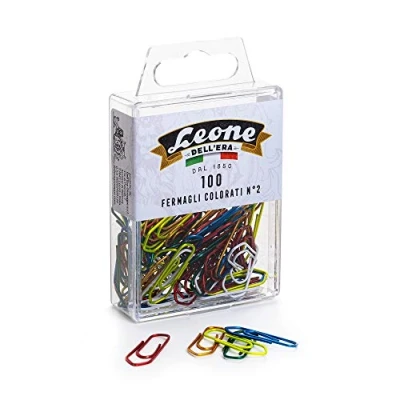 100 Coloured Lion of The Age Clips No. 2 mm. 26 Leonecolor Hanging Box Made in Italy