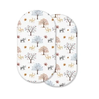 100% Cotton 2 Pcs Moses Basket Fitted Sheets Breathable, Soft & Antiallergic (Animals Trees, 75 x 30 cm)