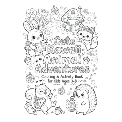 100 Cute Kawaii Animal Adventures: Coloring & Activity Book for Kids Ages 38 Fun Scenes, Mazes, Dot to Dot, and Color by Number