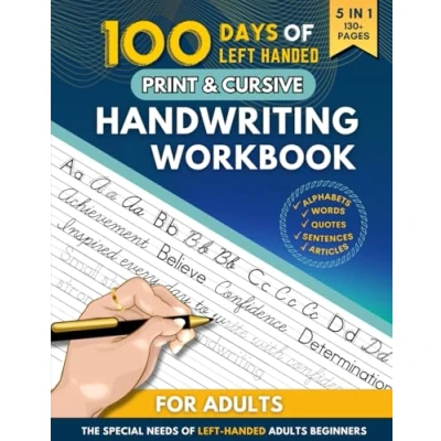 100 Days of Left Handed Print and Cursive Handwriting Workbook For Adults: Writing Practice to Improve Penmanship with Sight Words, Motivational Quotes, Sentences Beginners