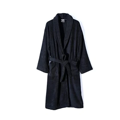 100% Egyptian Cotton Towelling Bath Robe Unisex Dressing Gown Terry Towel Gowns Bathrobes Shawl Collar (UK, Alpha, One Size, Regular, Black)