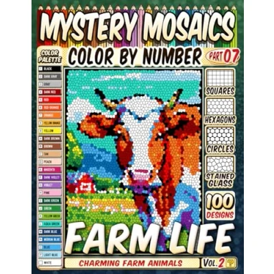 100 Farm Life Masterpieces Mystery Mosaic Color by Number Vol. 2: Charming Animals in Squares, Hexagons, Stained Glass, and Circles