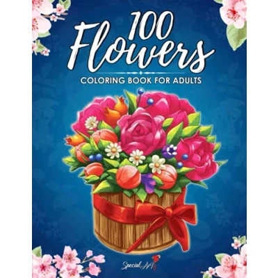 100 Flowers: An Adult Coloring Book with more than Beautiful Flowers and Floral Designs for Stress Relief Relaxation (Flowers Book)