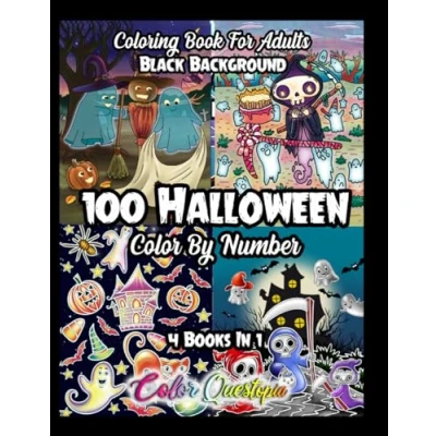 100 Halloween Color By Number Coloring Book For Adults 4 Books In 1 BLACK BACKGROUND: Cute and Spooky Numbered Designs Scary Fun Times (Color Adults)