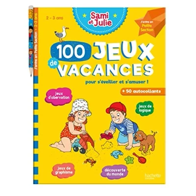 100 Jeux de vacances Sami et Julie J'entre en Petite Section Cahier 2024: Pour s'éveiller s'amuser ! Avec 1 crayon plus 50 autocollants