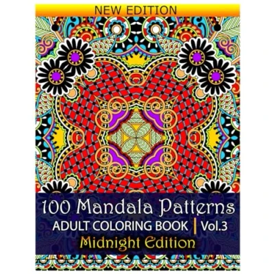 100 Mandala Patterns Midnight Edition Adult Coloring Book: Stress Relieving Designs for Adults Relaxation. Volume 3