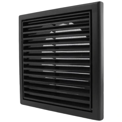 100 mm Plastic Louvred Wall Vent Grille 4 Inch Black Ceiling Extractor Fan Bathroom Cover with Flyscreen For Internal Or External Use Tumble Dryer Ventilation House Fans Hydroponics