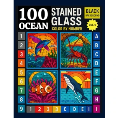100 Ocean Creatures Stained Glass Color by Number: Aquatic Dreams Coloring book with Sea Animals, Dolphins, Whales, Sharks, Turtles…Stress Relief for Adults and Kids