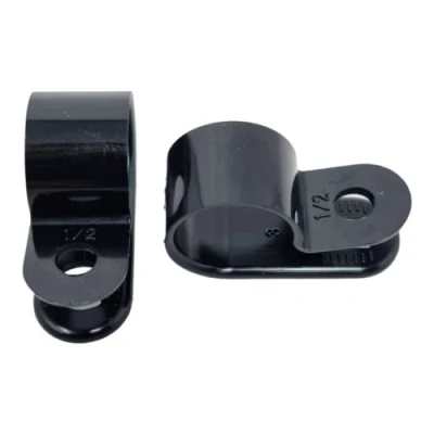 100 Pack of Black Nylon P Clips, Plastic Cable 12.7mm (1/2") Diameter