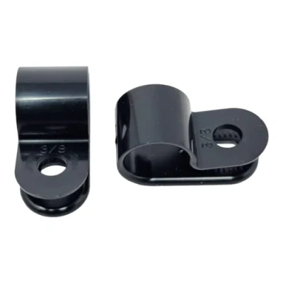 100 Pack of Black Nylon P Clips, Plastic Cable 9.5mm (3/8") Diameter