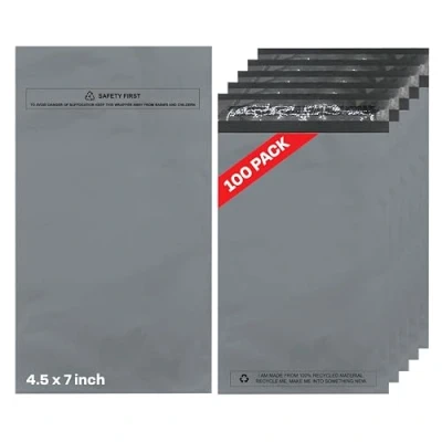 100 Pack Parcel Bags, Postage Mailing Bags (4.5 x 7) Grey Shipping with Self Seal Closure, Waterproof Tamper Proof Packaging for Mailing, Postage, & Delivery