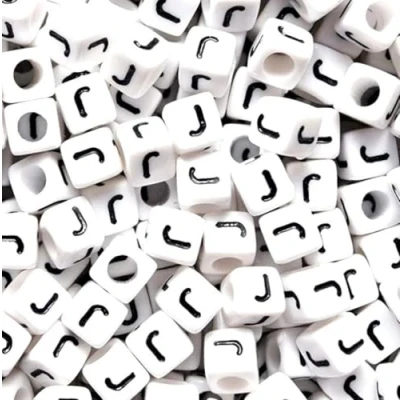 100 pcs 6mm White Cube Letter Alphabet Acrylic Beads Single & Mixed Letters (J)