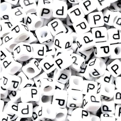 100 pcs 6mm White Cube Letter Alphabet Acrylic Beads Single & Mixed Letters (P)