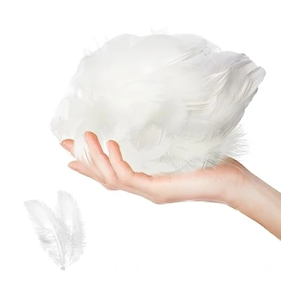 100 Pcs Feathers for Crafts, Colorful Feathers, Natural Goose DIY Handmade Crafts Gift Box Filling Ornament Decoration (White)