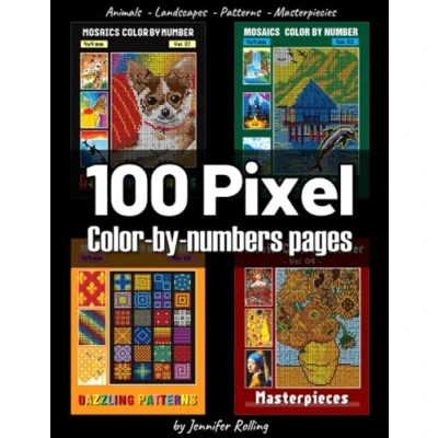 100 PIXEL Color By Numbers: Animals + Landscape Pattern Masterpiecies: Squares Coloring Book for Adults Relaxation and Stress Relief