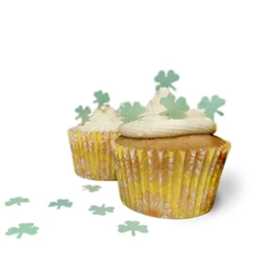 100 Pre Cut Green Shamrock St Patrick's Day Edible Wafer Paper Cake Cupcake Toppers You will receive a packet of 100 pre-cut shamrock toppers as shown in picture. Printed on quality wafer paper with edible inks. Shelf life of 9-12 months if kept dry Ready to place on top of your cake/cupcakes Fully Edible - Wafer Paper ingredients - Water, Olive Oil and potato starch, Manufacturer: Orange Trading Dartmouth LTD