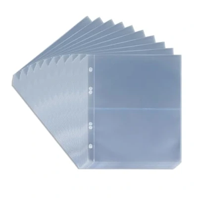 each for 2 postcards or large banknotes. pocket format: 153 x 108 mm, sheet format: 170 x 222 mm. free of plasticizer. punching also fits almost all other. common, same format album systems. (4-Ring 45-65-45 mm and 40-80-40 mm und 2-Ring 80 mm). RLO (sales unit): 100 item