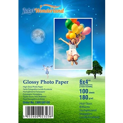 100 Sheets 180 GSM Professional 6 x 4 Glossy Photo Paper,6 Photographic Paper for Canon,Hp,Epson Inkjet Printers Labelwonderland (6" 4" inchs Sheets)