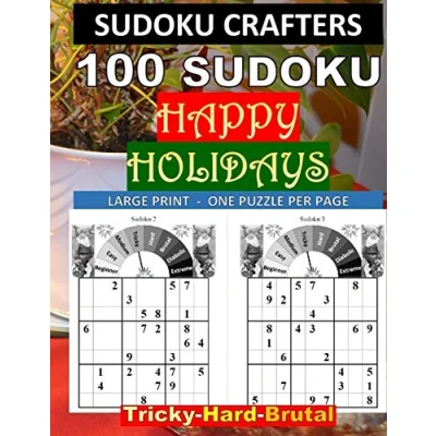 100 SUDOKU Happy Holidays Tricky Hard Brutal: LARGE PRINT ONE PUZZLE PER PAGE