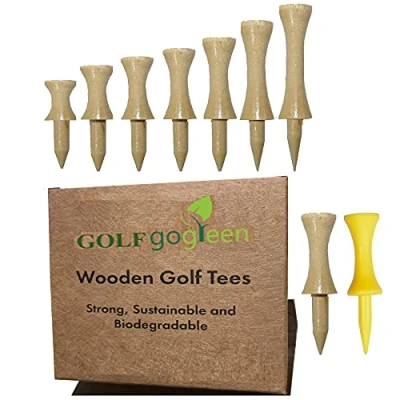 100 x 45mm Castle Golf Tees (including 20mm Spike) which are the same dimensions as the equivalent Yellow Plastic Castle Tees. Made from sustainably sourced bamboo instead of plastic or hardwood making these tees strong sustainable, biodegradable and therefore great for the environment.