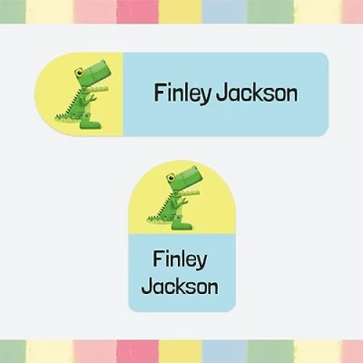 100 x Personalised Stick On Waterproof Name Labels Pack of 2 Sizes for Clothes, Water Bottles, School Uniform, Equipment Robot Dinosaur (SFP)
