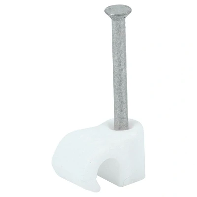 General description Manufactured from strong HDPE material with a hardened nail, these TIMCO Round Cable Clips are designed for securing and tidying a wide range of cabling types to wood, compressed board, and masonry. Technical specifications Color: White Size: To fit 3.5mm cables Material: HDPE Nail type: Hardened