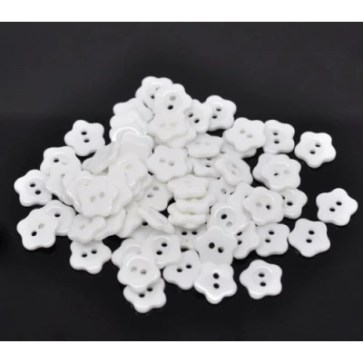 100 x White Flower Shape 2 Hole 12mm Resin Buttons. for Sewing, Knitting, Jewellery, Arts and Crafts