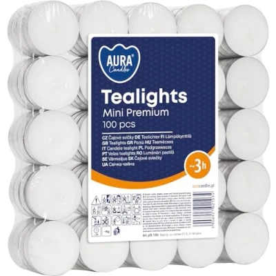 Charcoal pies are a perfect element of interior decoration in hotels, restaurants and wedding halls. Stylish interior design. Small paraffin candles do not drip and burn only at the end. Pack of 100 odourless stacked candles. Romantic evenings by candlelight expect a long burn time of about 3 hours. 100% RAL quality. All of our products are perfectly matched. The RAL quality seal stands for high and well-established quality criteria. Thanks to this guarantee, we guarantee the burning of scented candles and get to know the raw materials. Candles and tea lights look elegant in candlesticks. Contents: 100 pieces. Dimensions: height 120 mm, diameter 39 mm. Each candle burns for approximately 4 hours