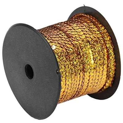 DIMENSIONS: 100 yards long and 6mm wide sequin trim ribbon, perfect for various crafting and sewing projects DESIGN: Flat paillette style with eye-catching laser gold finish that adds sparkle and glamour to your creations VERSATILITY: Ideal for costume making, dance wear, wedding decorations, home d¨¦cor, and fashion accessories APPLICATION: Easy to sew or attach to fabric, can be cut to desired lengths for customised embellishments MATERIAL: Durable sequin construction with consistent spacing for professional-looking results