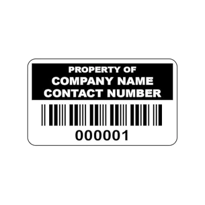 1000 Black Personalised Barcode Asset Tag Labels Custom Stickers 38mm x 20mm Permanent Vinyl Simple to Customize