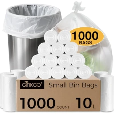 1000 SMALL BIN BAGS – BULK VALUE:Stock up with 1000 small bin bags! Durable white bin bags for home, office, or facilities—less frequent reorders, more convenience. FITS MOST SMALL BINS:These small bin liners (45x50cm) are designed to fit most pedal bins and swing bins, including common 5L &10L bin liners in bathrooms, bedrooms, and offices. STRONG & LEAK-RESISTANT:Tough clear bin bags with reinforced star-sealed bottoms—resistant to punctures, tears, and leaks, even with wet or heavy waste. EASY TEAR & NEAT STORAGE:Rolls of small bin bags with perforations for quick, clean tearing. Compact design keeps your storage tidy. VERSATILE & PRACTICAL:Use as pedal bin liners, swing bin liners, or small bin liners for kitchens, offices, cars, and desktops—clear bin bags for every waste need.