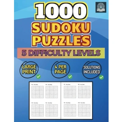1000 Sudoku Puzzles: 5 Difficulty Levels: 4 Per Page Solutions Included Large Print (Sudoku 1000)