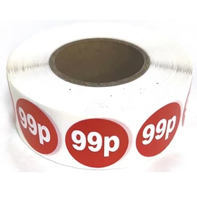 1000x 25 mm red Price self Adhesive Stickers Sticky Labels for Retail Display. (99P)