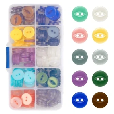 100Pcs Round Fish Eye Buttons, GLADFRESIT 2 Hole Resin Baby Buttons Colorful Sewing for Cardigans, Knitting, DIY Crafts Accessories 10 Colors (14mm)
