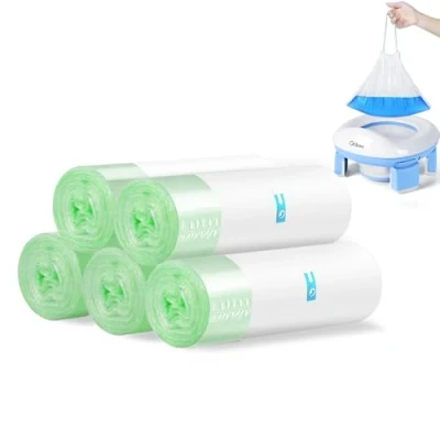 【QUANTITIES】: 20 pcs for 1 roll.Total 5 rolls of 100 pcs 【EASY USE】: Easy to tie up and lift with drawstring. 【MATERIAL】: Made of Premium PE. 【WIDER APPLICATION】: Not only used for Orzbow Travel Potty,but also used for cleaning up adult and pet waste. 【SPECIFICITIES】: High load-bearing and tear-resistant.