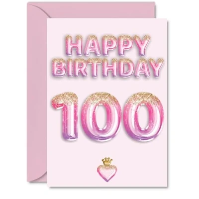 100th Birthday Cards for Men Women Pink & Purple Glitter Balloons Happy Card 100 Year Old Man Woman Uncle Wife Auntie Grandad, A5 Bday Greeting