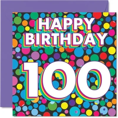 100th Birthday Cards for Women Men Funky Rainbow Dots Happy Card 100 Year Old Woman Man Auntie Husband Nan Nanny, 145mm Bday Greeting