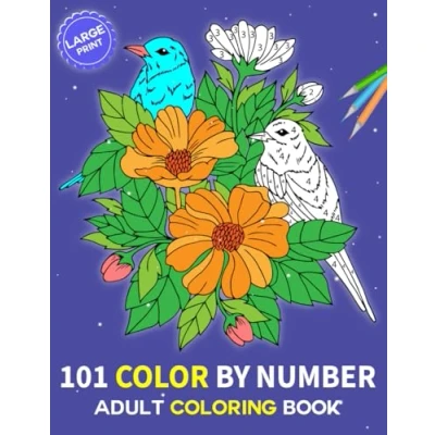 101 Large Print Color By Number Adult coloring Book: Easy pages of beautiful flowers, birds, butterflies, animals, landscapes, mandalas, patterns, and more
