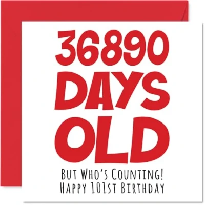 101st Birthday Card for Men Women Him Her 36890 Days Old Funny Adult Happy Grandma Nan Grandad Gran Mum Dad, 145mm Humour Joke Greeting Cards