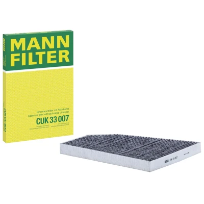 CUK 33 007; Pollen filter; MANN-FILTER; Activated Carbon Filter 322mm 260mm 30mm; for TESLA; 103904200A, 103904200B