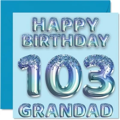 103rd Birthday Card for Grandad Blue Glitter Party Balloons Happy Cards 103 Year Old from Grandson Granddaughter, 145mm x Bday Greeting Gift